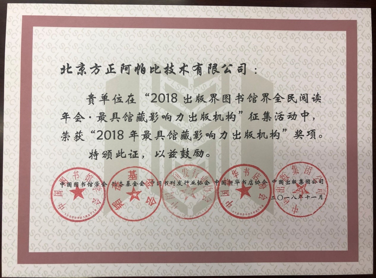 方正阿帕比再獲“最具館藏影響力出版機(jī)構(gòu)”