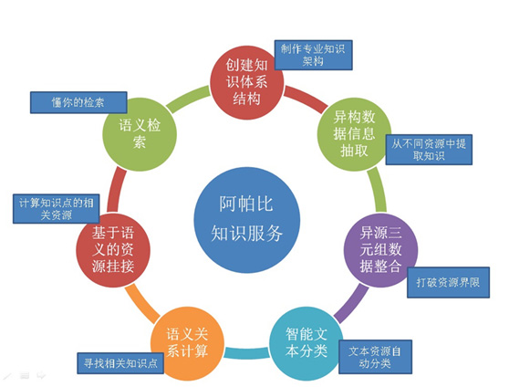 方正阿帕比在語義分析技術(shù)、語義網(wǎng)技術(shù)、非結(jié)構(gòu)化信息抽取技術(shù)、數(shù)據(jù)挖掘技術(shù)、語義檢索技術(shù)、自然語言處理技術(shù)、機(jī)器學(xué)習(xí)技術(shù)方面積累了豐富的經(jīng)驗(yàn)。方正阿帕比在線服務(wù)系統(tǒng)中,部分應(yīng)用了知識服務(wù)的相關(guān)技術(shù),與傳統(tǒng)的資源服務(wù)相比,提高了服務(wù)的效果。
