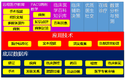 依托于方正阿帕比醫(yī)藥領(lǐng)域相關(guān)的豐富底層資源,應(yīng)用中文分詞技術(shù)、非結(jié)構(gòu)化信息抽取、文本挖掘、自然語言處理、語義搜索和數(shù)據(jù)統(tǒng)計分析預(yù)測等先進(jìn)技術(shù),打造一個集臨床醫(yī)學(xué)百科知識、臨床輔助決策、PACS病例教學(xué)、在線診療、遠(yuǎn)程醫(yī)療教育等功能于一體的醫(yī)療知識服務(wù)平臺,從而為醫(yī)學(xué)院學(xué)生和住院醫(yī)師提供學(xué)習(xí)參考,提高廣大基層醫(yī)療人員的醫(yī)療水平,為醫(yī)生提供臨床輔助決策,提供優(yōu)質(zhì)醫(yī)生互動交流和學(xué)習(xí)提高平臺,為醫(yī)院和醫(yī)療監(jiān)管部門提供數(shù)據(jù)分析和趨勢預(yù)測。